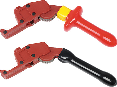 Es gibt zwei Versionen zur Auswahl, entweder mit Doppeldreieck für Arbeiten an unter Spannung stehenden Teilen bis 1000 V oder mit Handschutz.